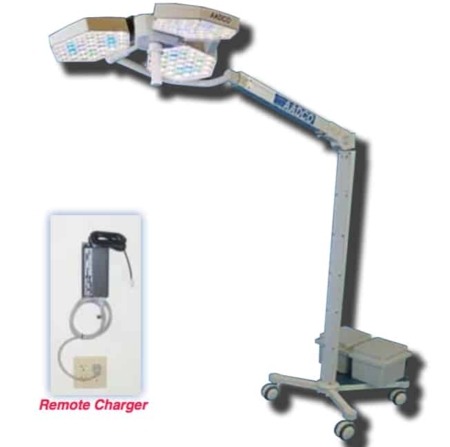 AADCO’s Mobile Procedure Lamp is a 130,000 Lux LED Model. It is equipped with an advanced battery pack, allowing it to operate, when fully charged, for up to 8 hours. This LED lamp is state of the art, using the latest advances in lighting technologies while using only 30% consumption of power to produce a very powerful 130,000 Lux at 1 meter.