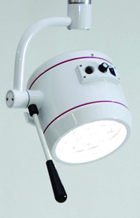 The ErgoLite® lamp runs on 24V DC from a 120V or 240V power supply and offers infinite focus with a light intensity of 75,000 Lux LED. The lamp head is 19cm in diameter, and infinite focus lets the field size stretch from 14cm to 25 cm, depending on the distance between the lamp and subject. Comes with a removable, sterilizable handle. Compatible with Hercules® Overhead Suspension Systems. Also available MRI-Safe®.