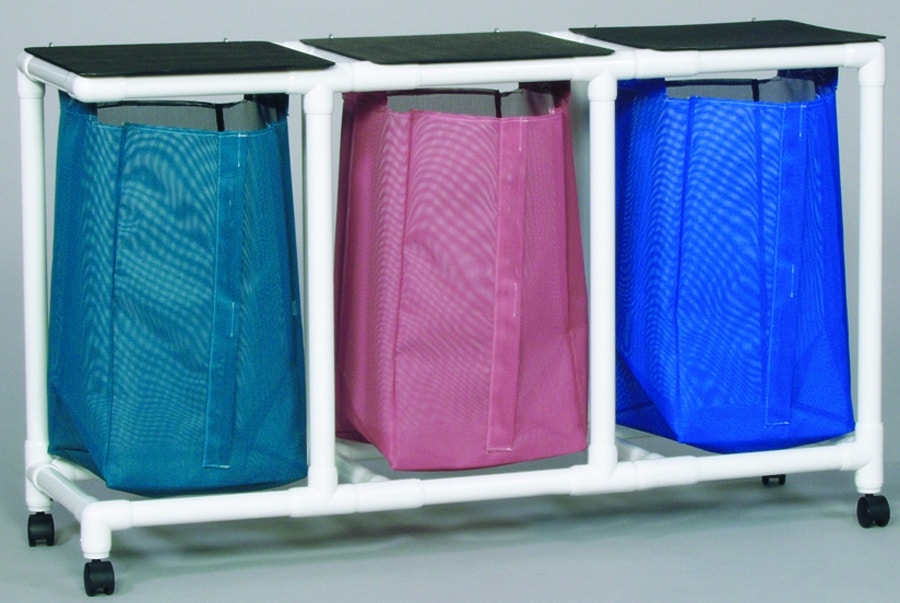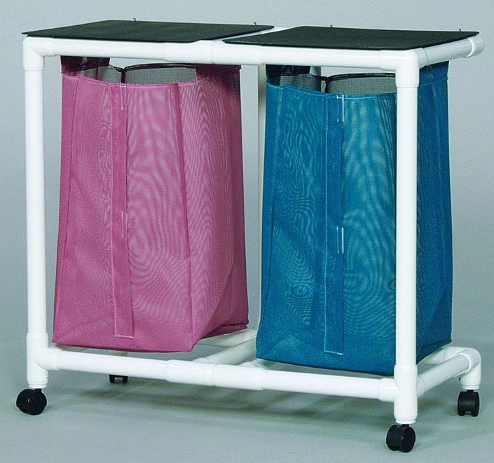 • Mesh velcro front bags, requiring 39 gallon plastic liners are available in 4 colors, TEAL, WINEBERRY, BLUE and WHITE